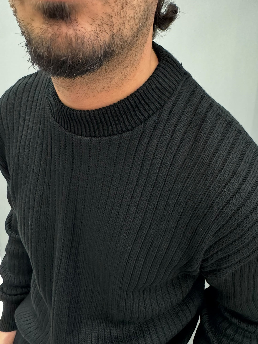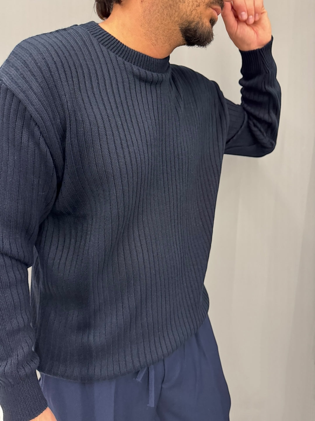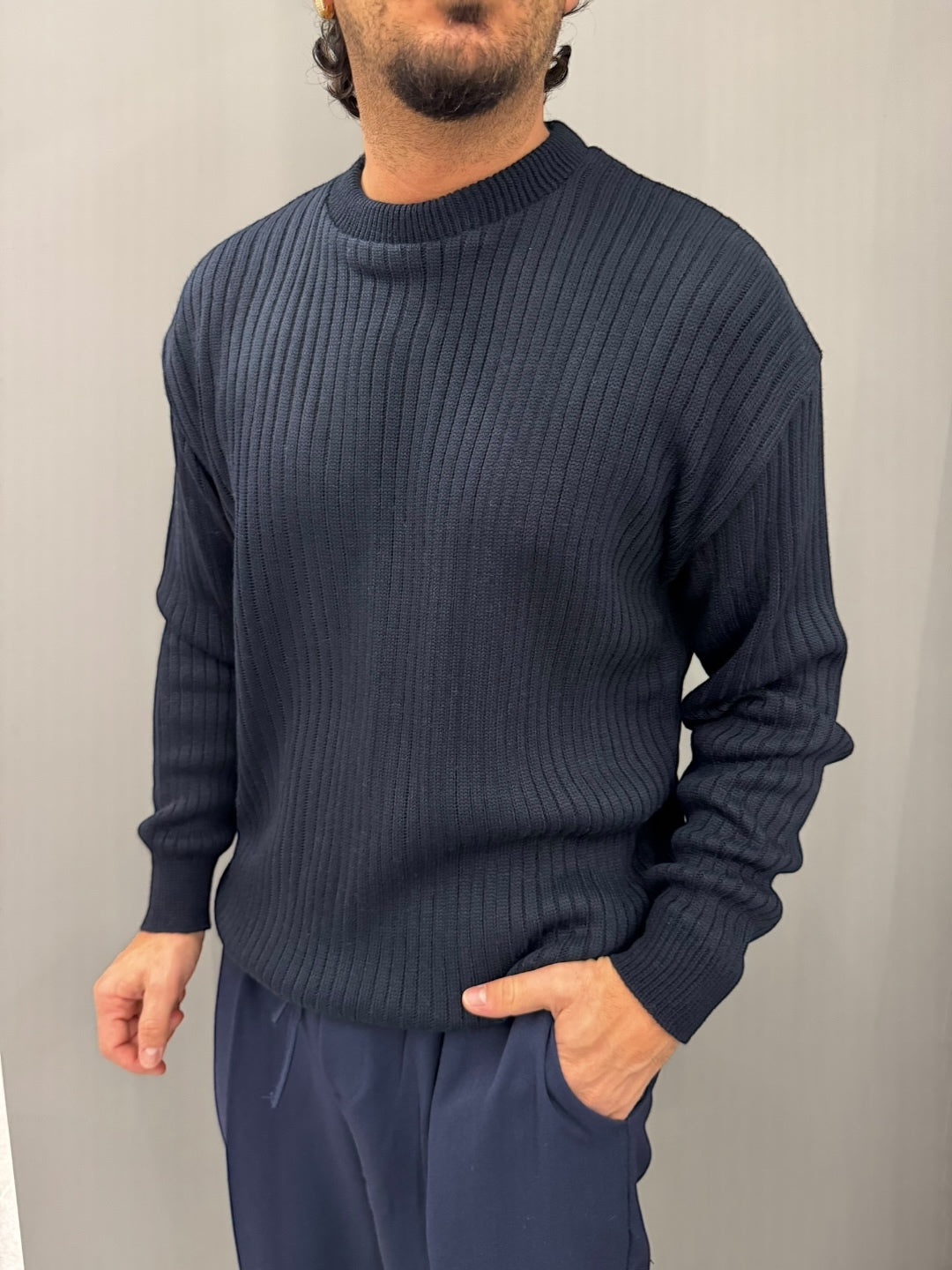 Aggiorna il tuo guardaroba con il nostro maglione a coste larghe, disponibile in due colori classici: un elegante nero e un versatile blu navy. Questo capo è un must-have per chi cerca comfort e stile senza compromessi!