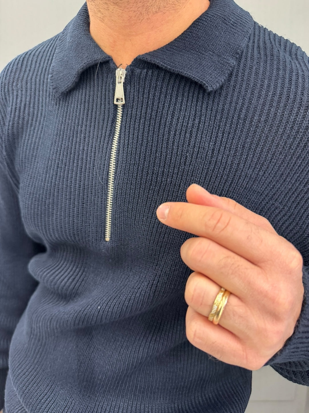 Rinnova il tuo guardaroba con il nostro maglione polo con zip, disponibile in due colori eleganti: un sofisticato nero e un classico blu navy. Questo capo è l'ideale per chi cerca un perfetto equilibrio tra comfort e stile!