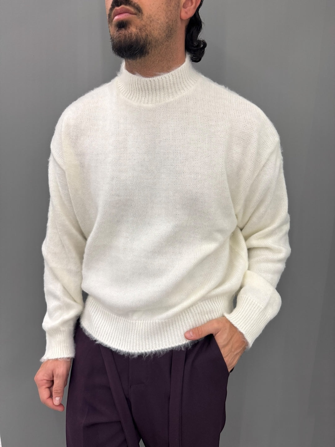 Scopri il nostro maglione in lana mohair, un capo che unisce eleganza e comfort in ogni dettaglio.