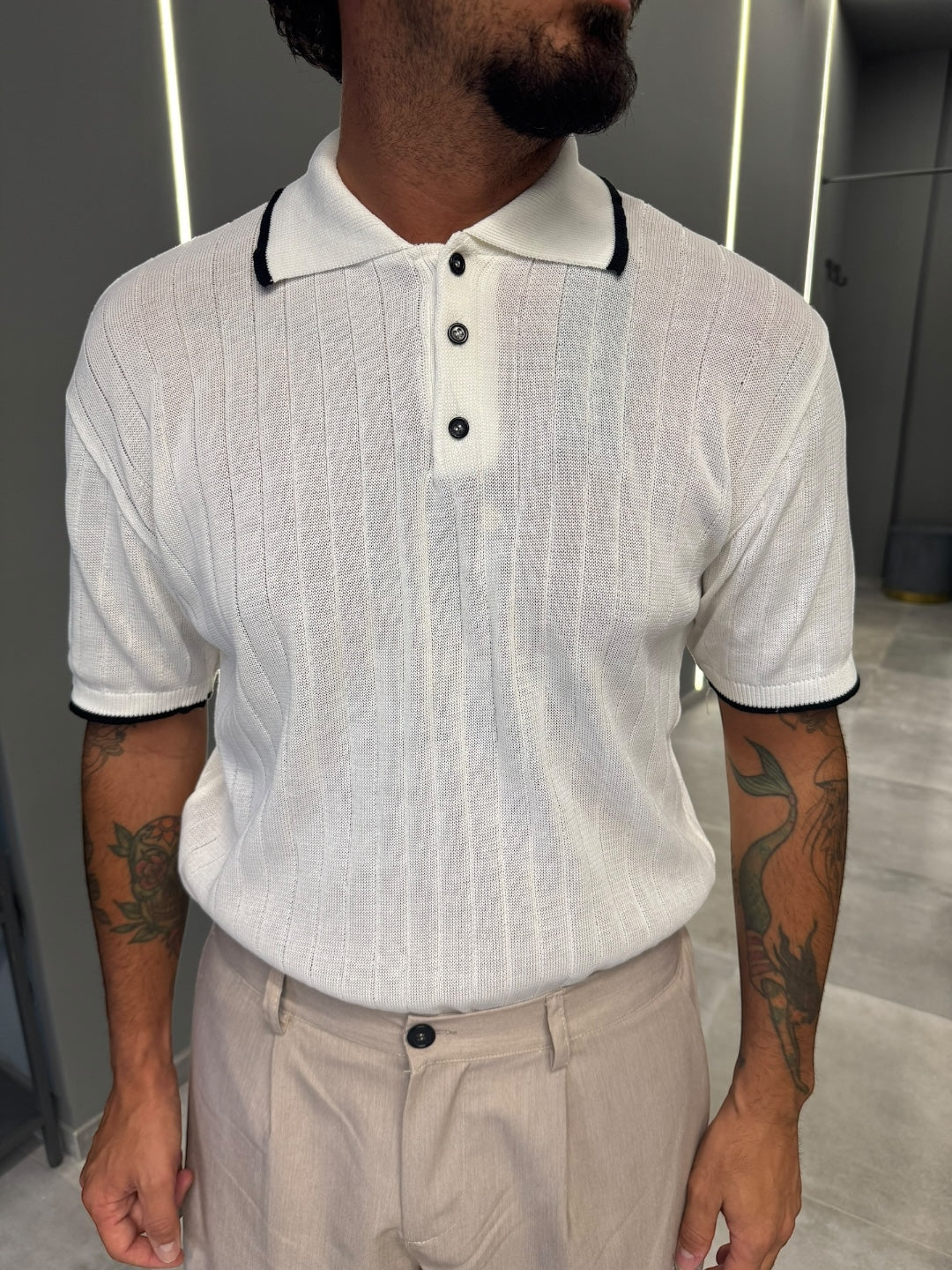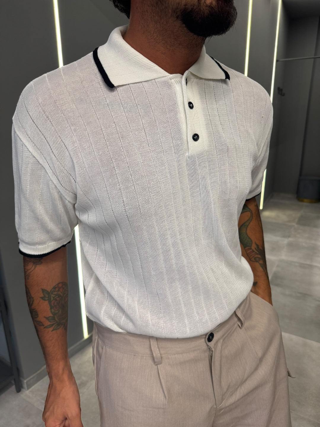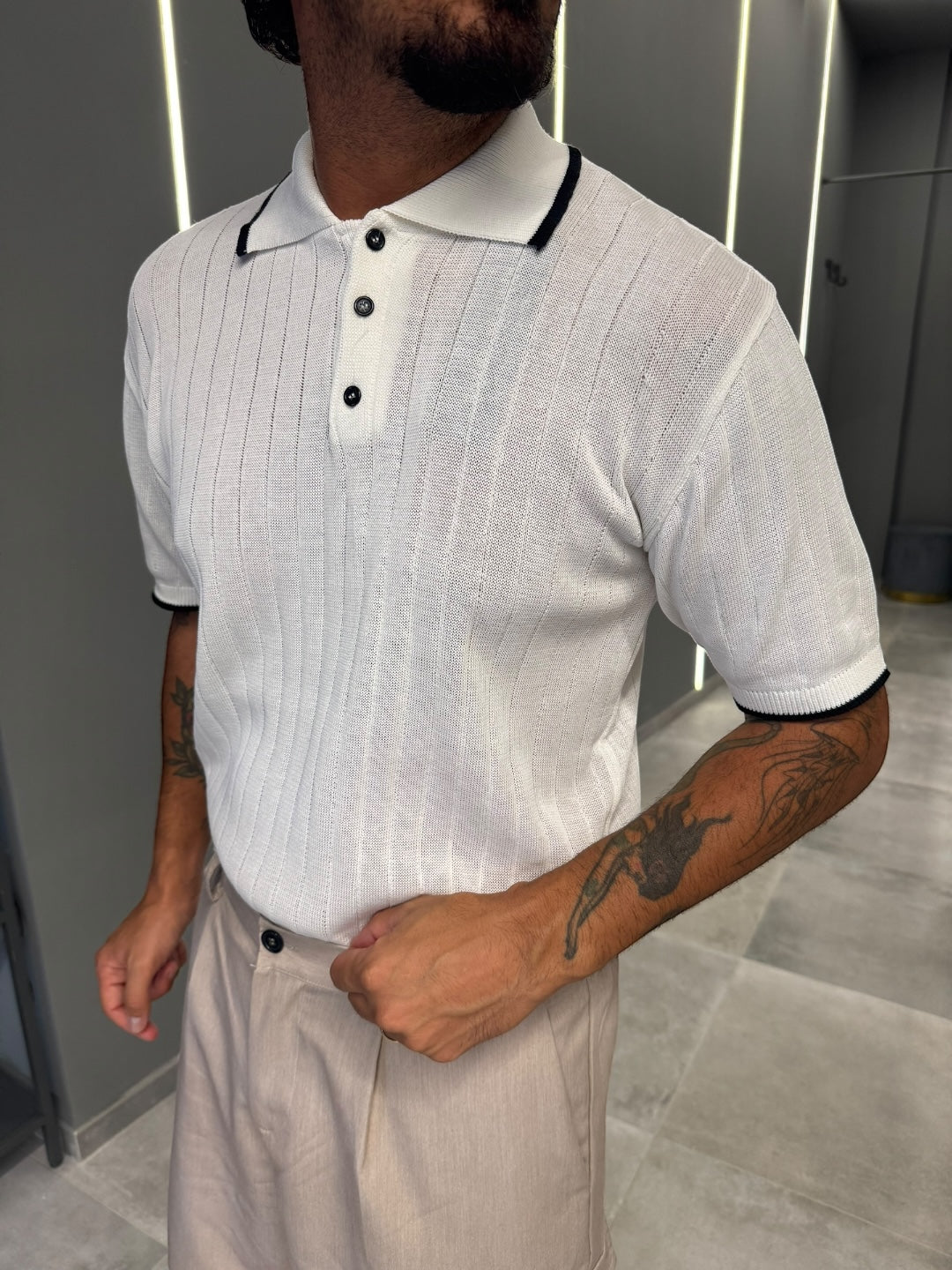 Il design con colletto classico e tre bottoni dona un tocco di classe discreta, mentre i dettagli a contrasto sulle maniche e il colletto aggiungono un guizzo di personalità che rende ogni outfit unico. Il fit leggermente aderente valorizza la silhouette, ideale per un look smart casual, perfetto per l’ufficio o per un aperitivo con gli amici.