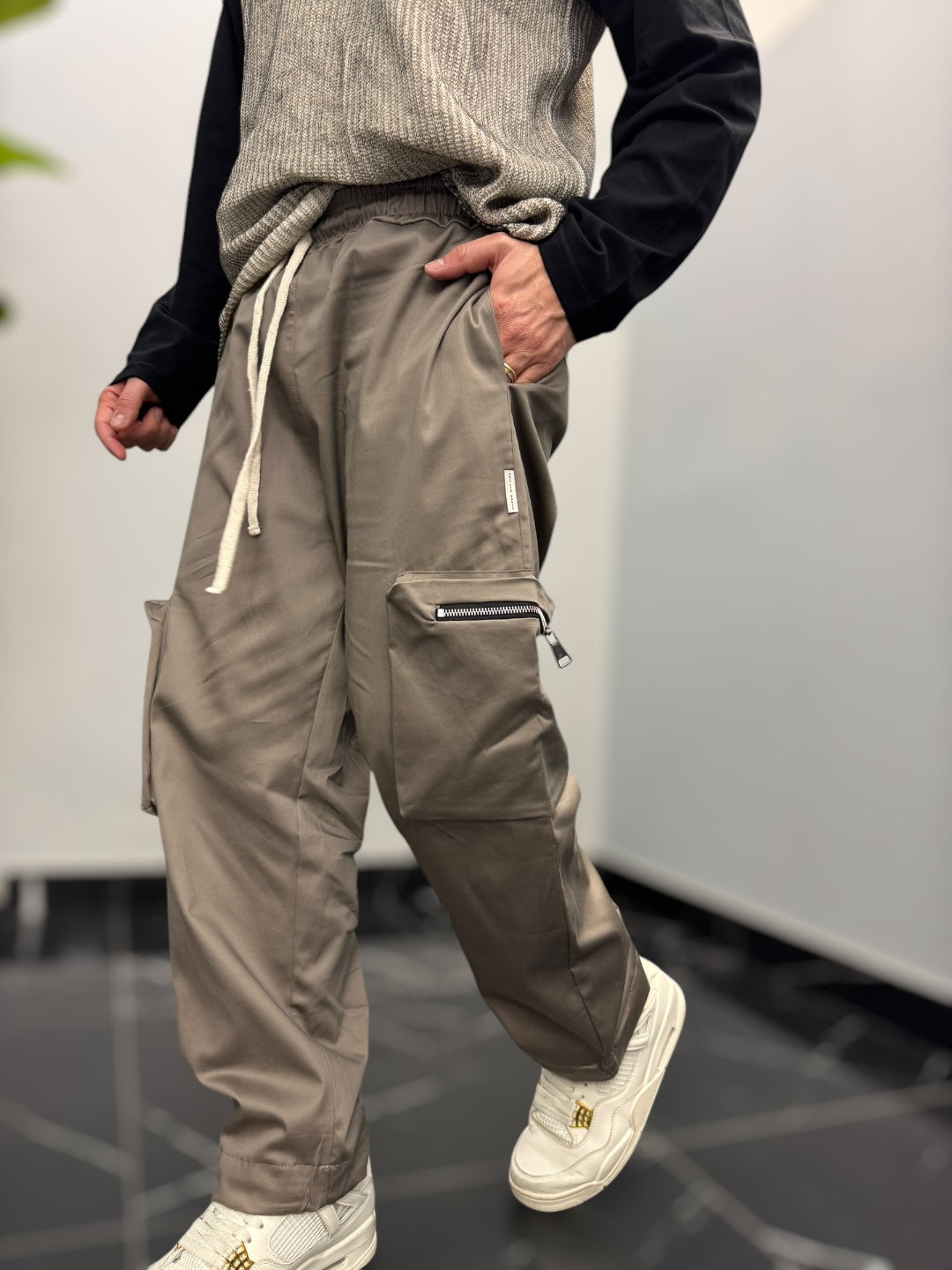 Fai un passo verso il comfort e lo stile con questo pantalone cargo in cotone gabardina, un capo che combina praticità e tendenze moderne. La vita elasticizzata garantisce una vestibilità comoda e perfettamente adattabile, mentre le tasche laterali con zip aggiungono un tocco di funzionalità e design, offrendo anche un dettaglio di stile decisamente contemporaneo.